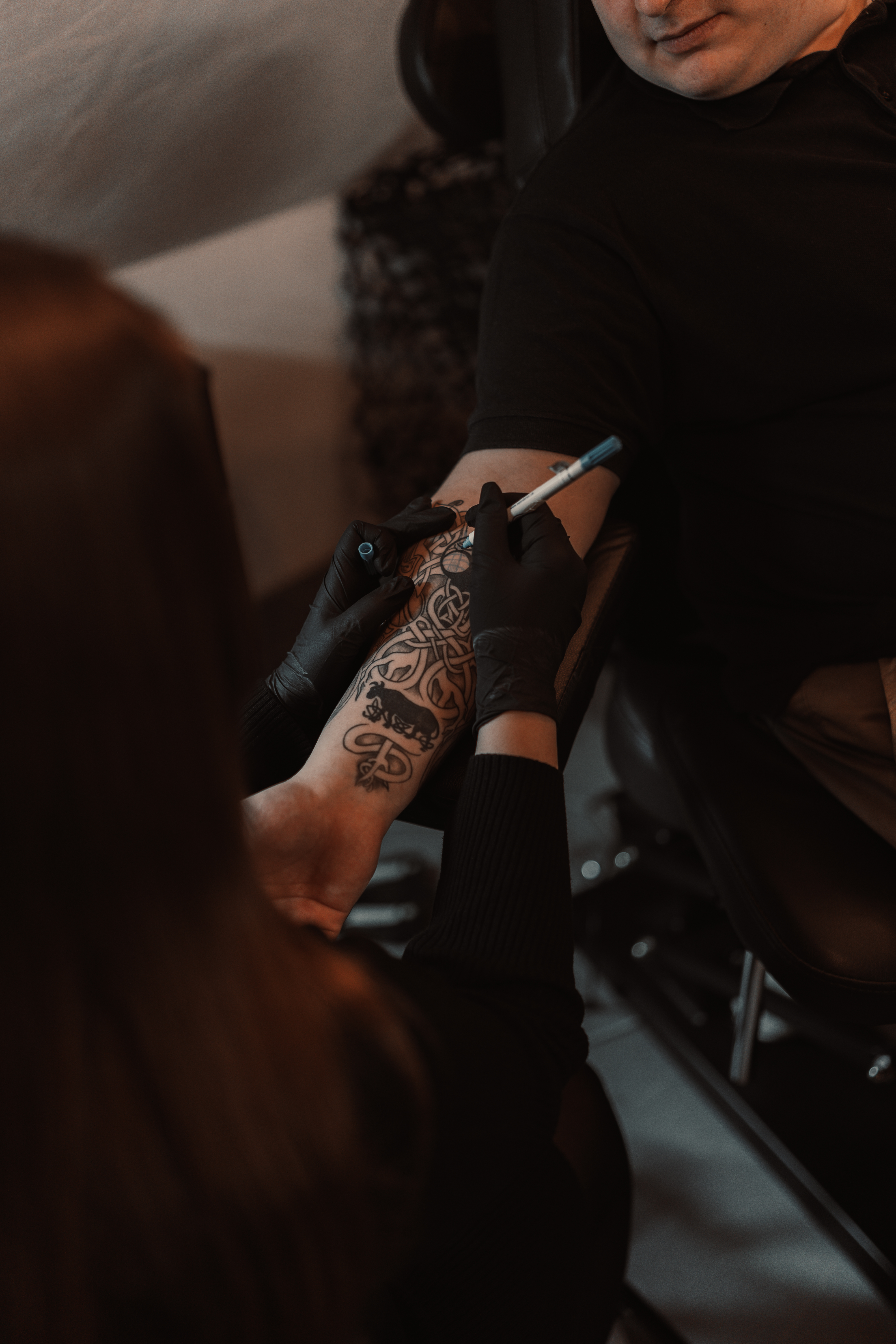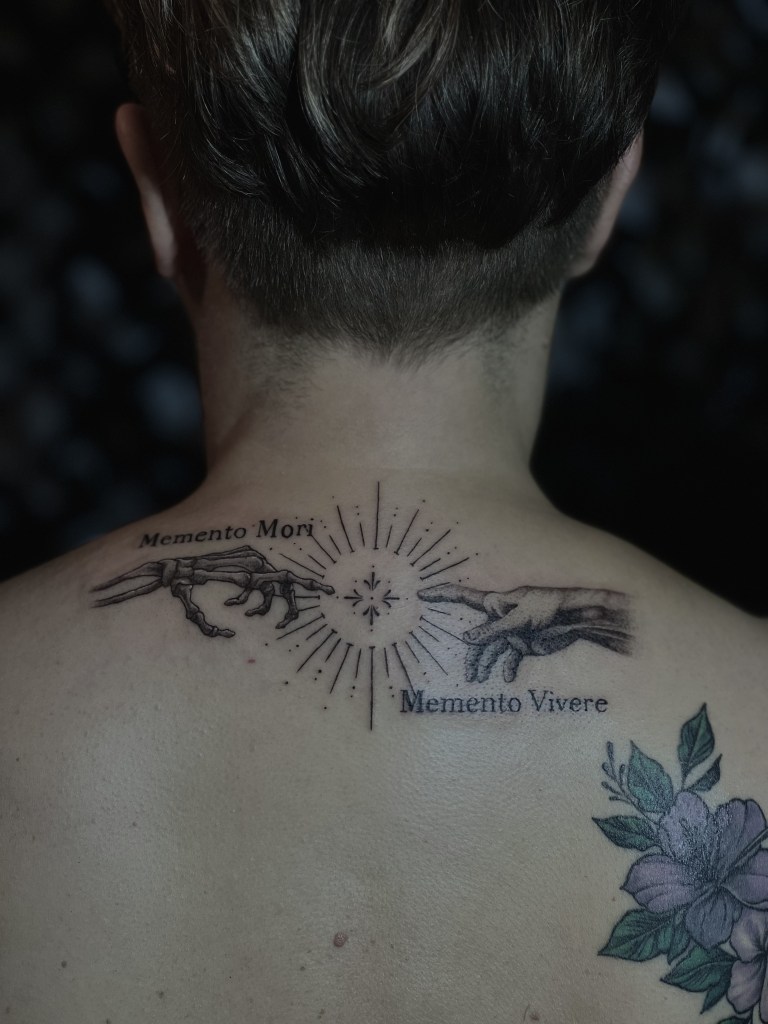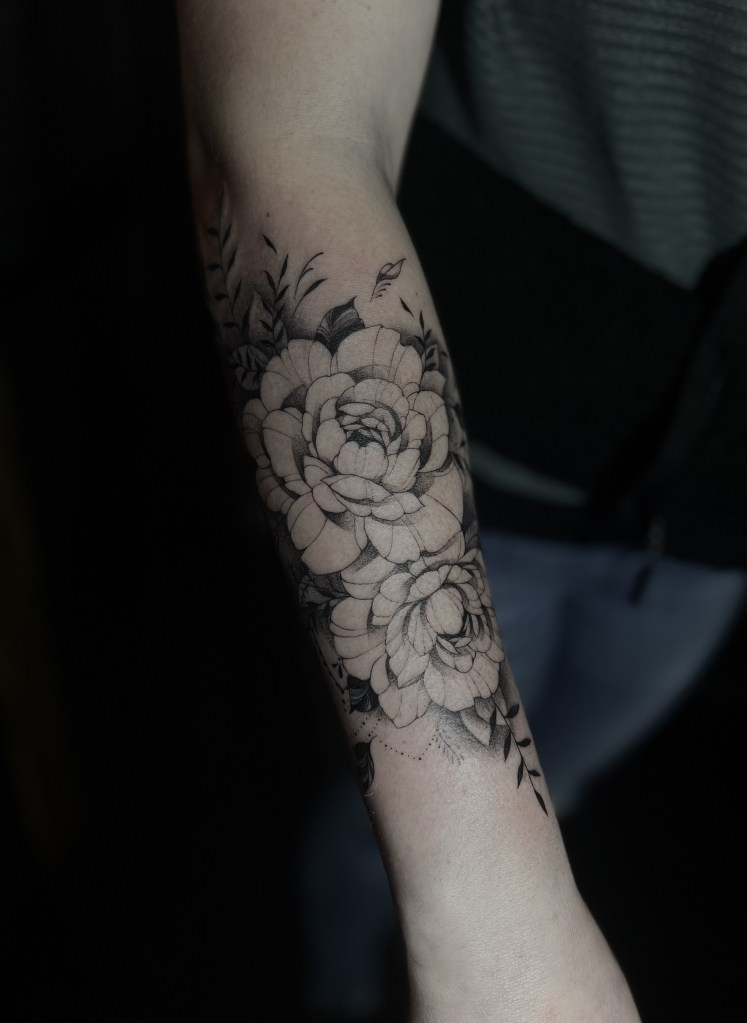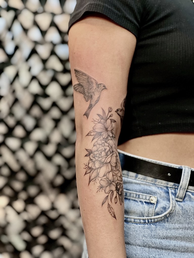 Am liebsten arbeite ich im Fineline, Mikrorealismus und Dotwork. Bei Statuen, Floralen Motiven oder sogar einer Mischung aus realistischen Motiven und Geometrik bin ich sofort dabei. In Zukunft möchte ich außerdem noch ganz viel zum klassischen Realismus dazu lernen!